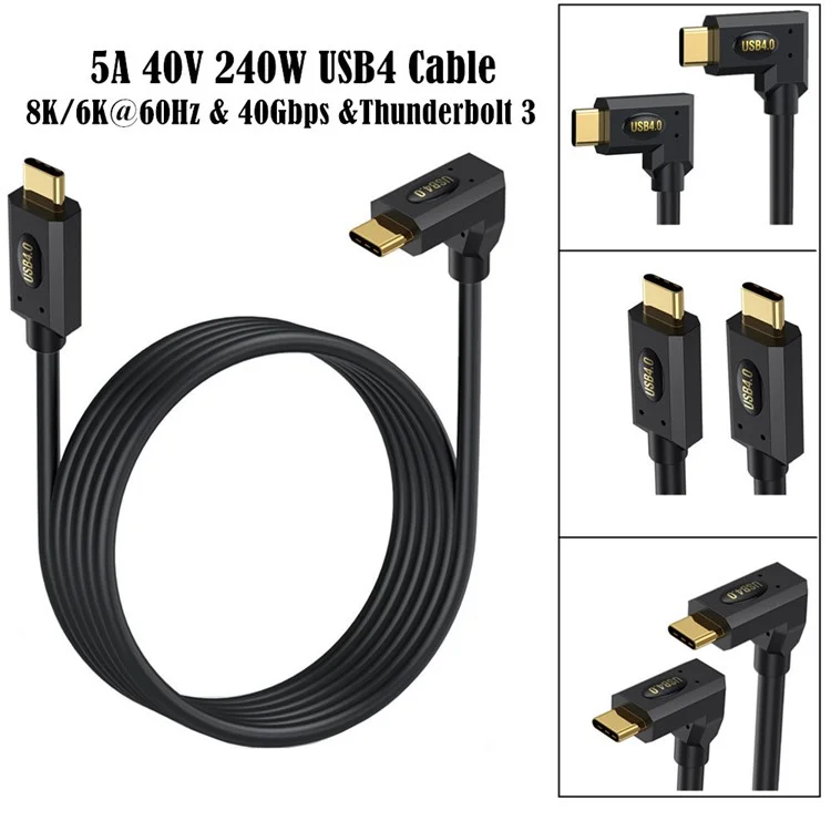 0.3m USB4 Straight to Side-Angled Type-C Cable 40Gbps Compatible with Thunderbolt 8K Video PD 240W Fast Charging Cord