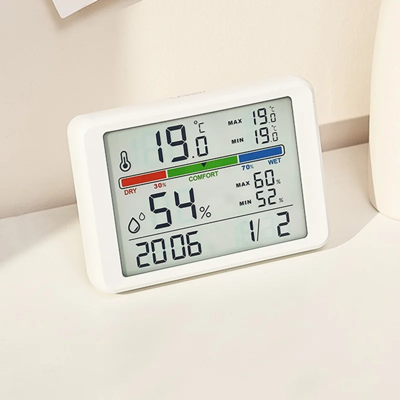 Features: Time, date, temperature, humidity, comfort level display