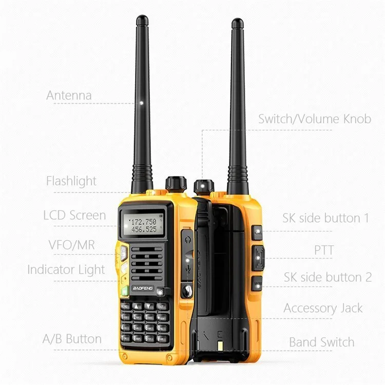 BAOFENG UV-S9 Plus Tragbares Walkie-Talkie UV Dual Band Handfunkgerät Interphone, USB-Ladegerät, EU-Stecker - Gelb