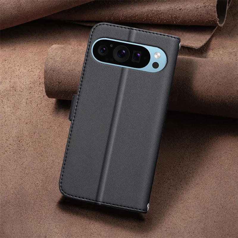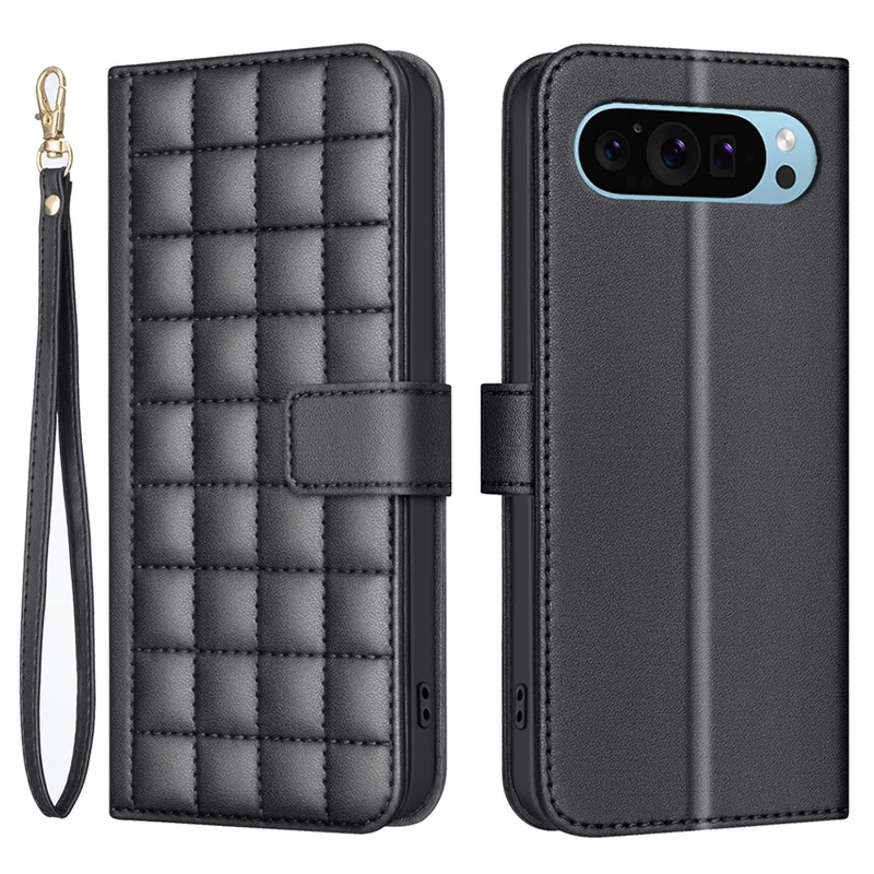 BINFEN COLOR for Google Pixel 9 Pro Leather Phone Case Square Grid Pattern - Black