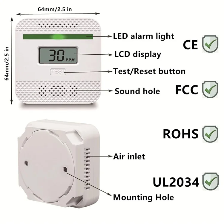 • 【Quality Assurance】This CO alarm has undergone rigorous quality testing and is certified by CE, UL2034, ROHS, and FCC