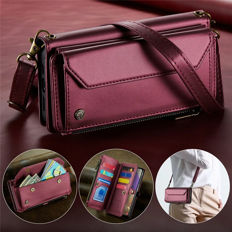 For Samsung Galaxy A32 5G / M32 5G Leather Case CASEME C36 Zipper Multiple Card Slots Phone Cover with Straps - Wine Red