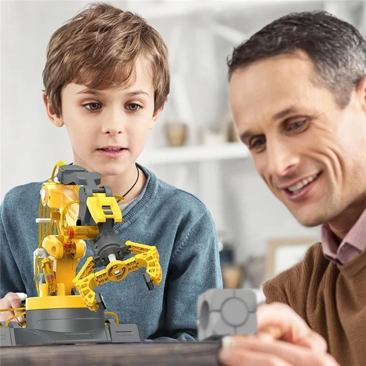 DIY 3 in 1 Assembled Explore Kids Hydraulic Robot Mechanical Arm Science Experiment Puzzle Toy - Grey + Yellow