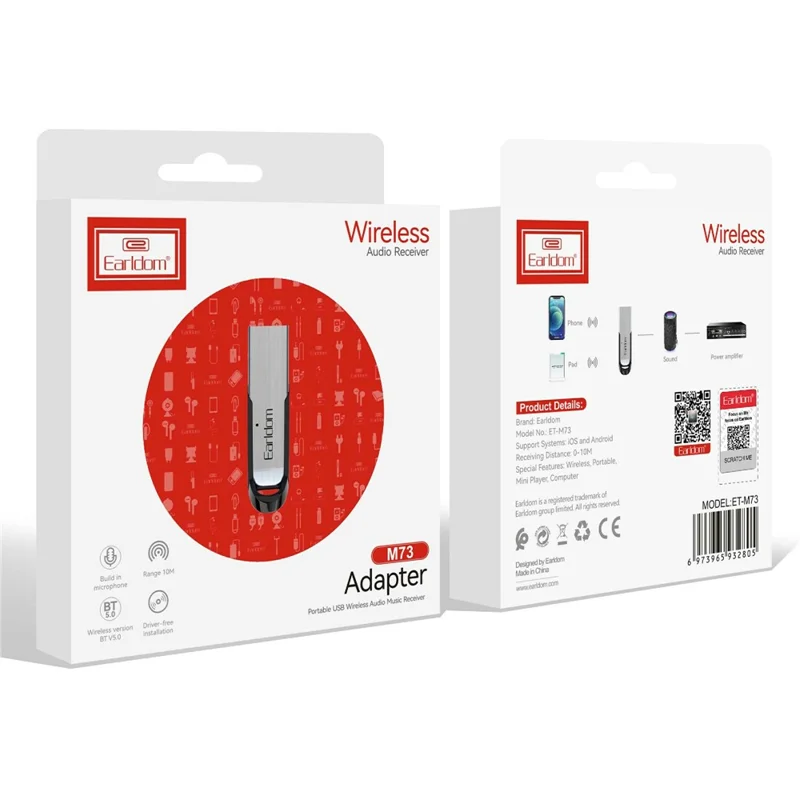 EARLDOM M73 USB Bluetooth-compatible Adapter Wireless Audio Receiver Car Bluetooth-compatible Music Navigation Receiver