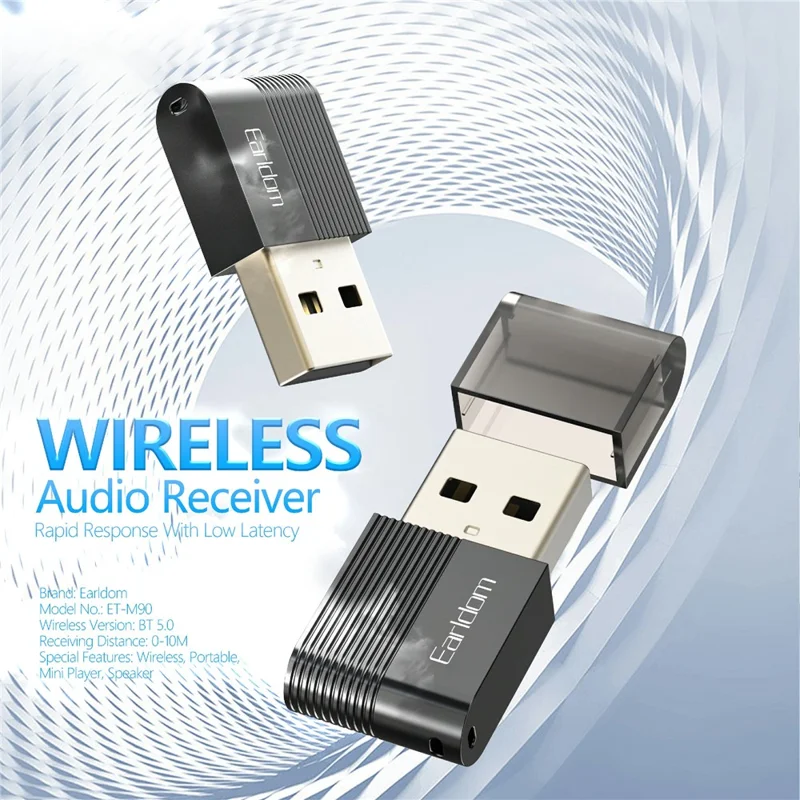 EARLDOM M90 USB Wireless Audio Adapter Bluetooth-compatible 5.0 Audio Receiver Transmitter for Car, Computer