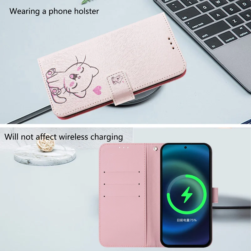 For Honor Magic7 Lite 5G / X9c 5G / X60 Pro 5G Case Pattern Printing Wallet Phone Cover with Strap - Cute Cat