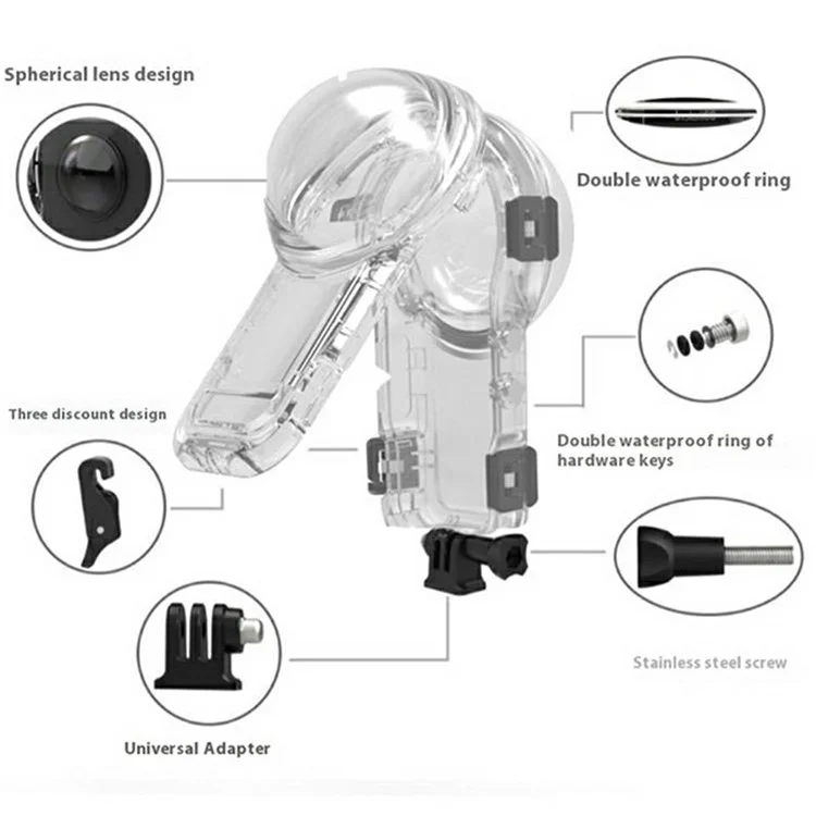 For Insta360 X5 Action Camera Invisible Diving Case 60M Underwater Hard PC Waterproof Housing