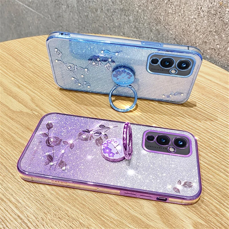 KADEM Für OnePlus 9 (EU / US Version) Ringständer Blumenmuster TPU Hülle Glitzer Anti-Kratz Handyhülle - Lila