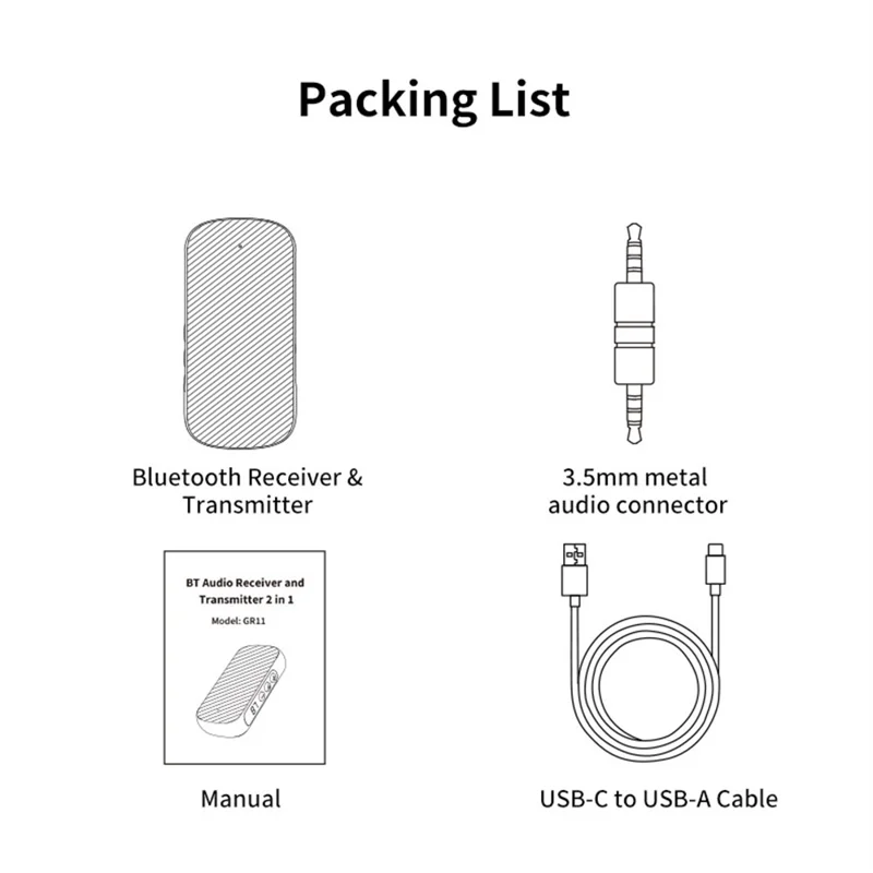 GR11-JL Wireless Bluetooth-compatible 5.3 Adapter Metal Audio Receiver Transmitter Support 2 Phones