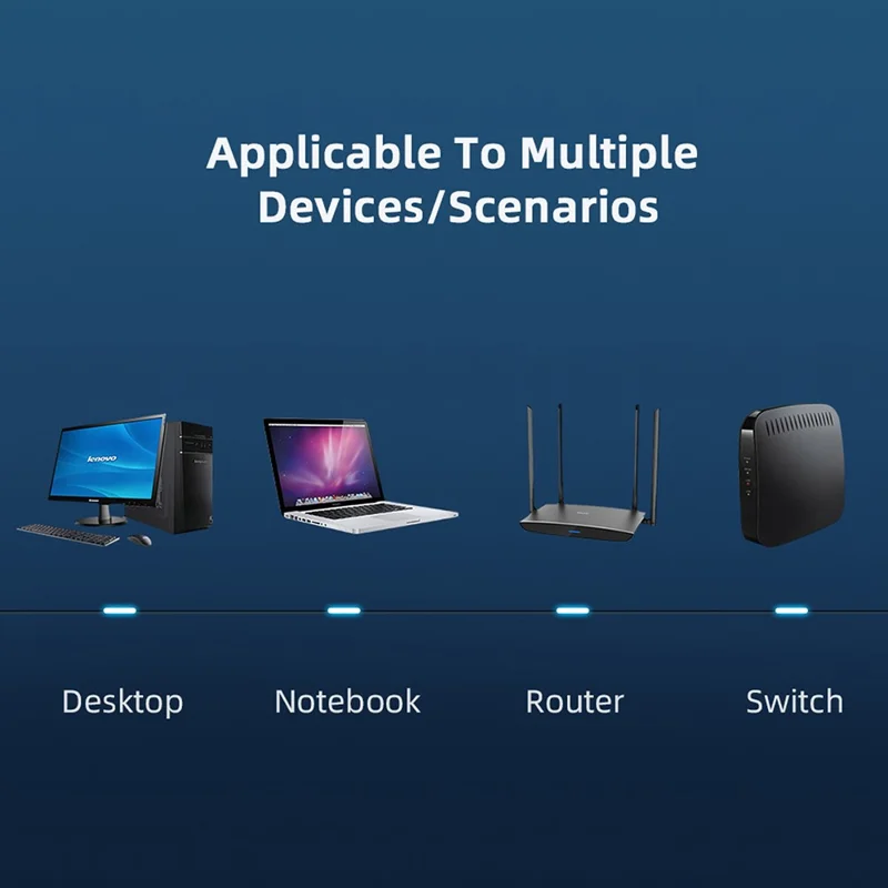 Compatible with 10BASE-T, 100BASE-TX, 1000BASE-T, and 10GBASET, network adapters, desktop, laptop, router, modem, switch, hub, DSL, X-Box, PS2, PS3, PS4, patch panel and and other high performance networking applications