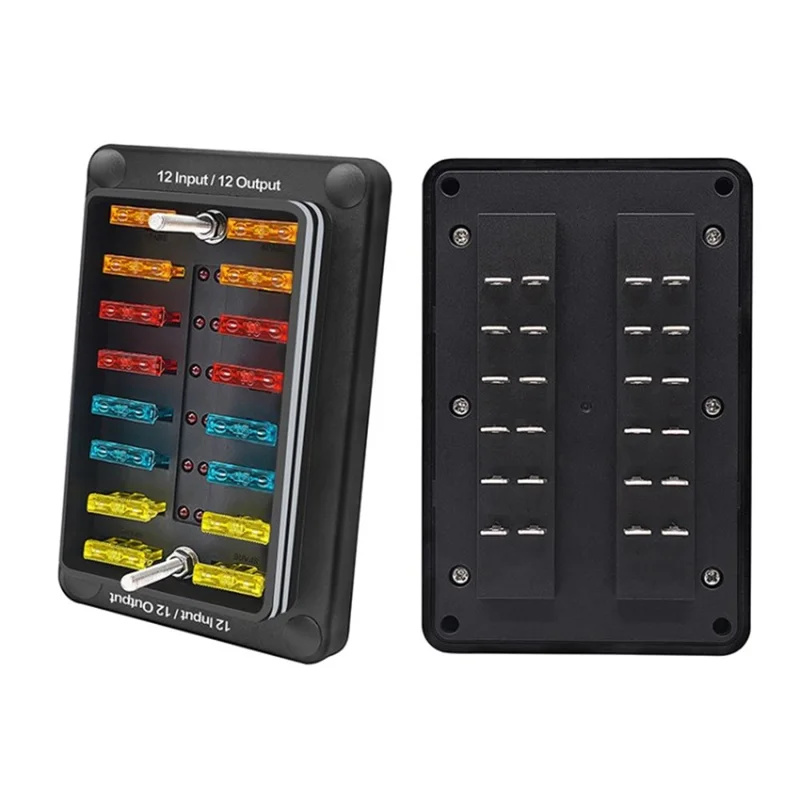 12 In 12 Out Universal Fuse Box Waterproof ATO/ATC Fuse Block for Car Boat - Black 24