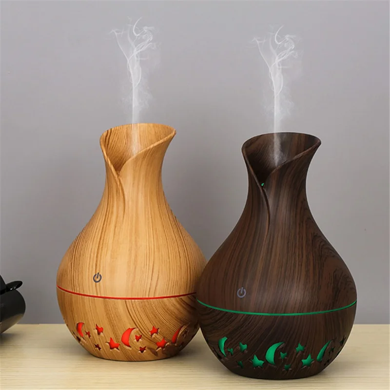 200ml Vase Shape Air Humidifier Moon Star Hollow Mist Maker Silent Fog Sprayer with Colorful Light (with CE) - Brown / US Plug