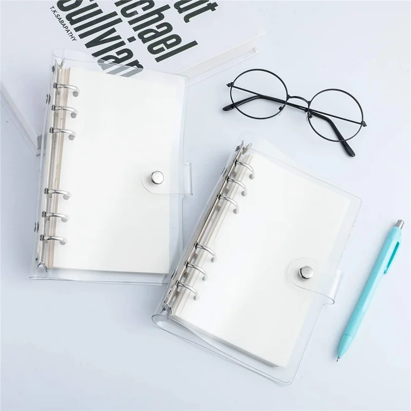 2PCS A6 Binder Covers Transparent Soft PVC 6-Ring Design Snap Button Closure Loose Leaf Folder Notebook Shells