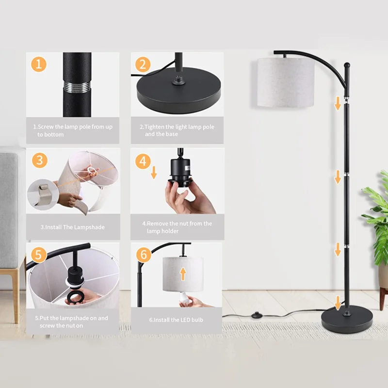 Adjustable Beige Lampshade Included: The arc floor lamp comes with a rotating head, assuring convenience for daily life. When you put the floor light behind your couch, you can adjust the lamp shade to any angle you like, which is very proper for reading and working
