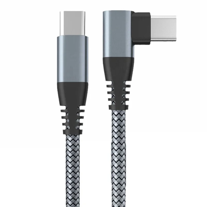 3m 90-Degree Type-C to Type-C Cable PD 60W USB 2.0 Fast Charging Data Cord - Grey