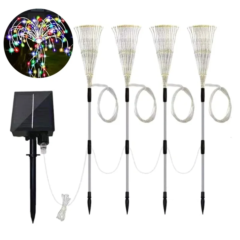 Innovative Firework Design: These solar-powered ground stake lights feature a unique firework shape that adds a festive and decorative touch to your outdoor spaces. Perfect for gardens, patios, pathways, and special events