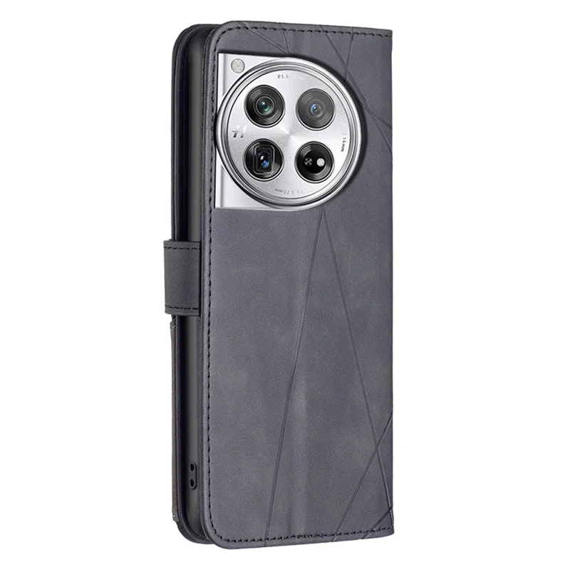 BINFEN COLOR For OnePlus 12R 5G / Ace 3 5G Phone Cases Wallet Stand Geometry Imprint Leather Cover - Black
