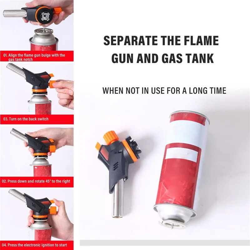 A handheld butane torch is very helpful in the kitchen. You can use it for burning the pork hair, making desert and barbecue. No preheating is needed and can be used reversibly, this flame gun is so convenient for use. Have this to make cooking easier