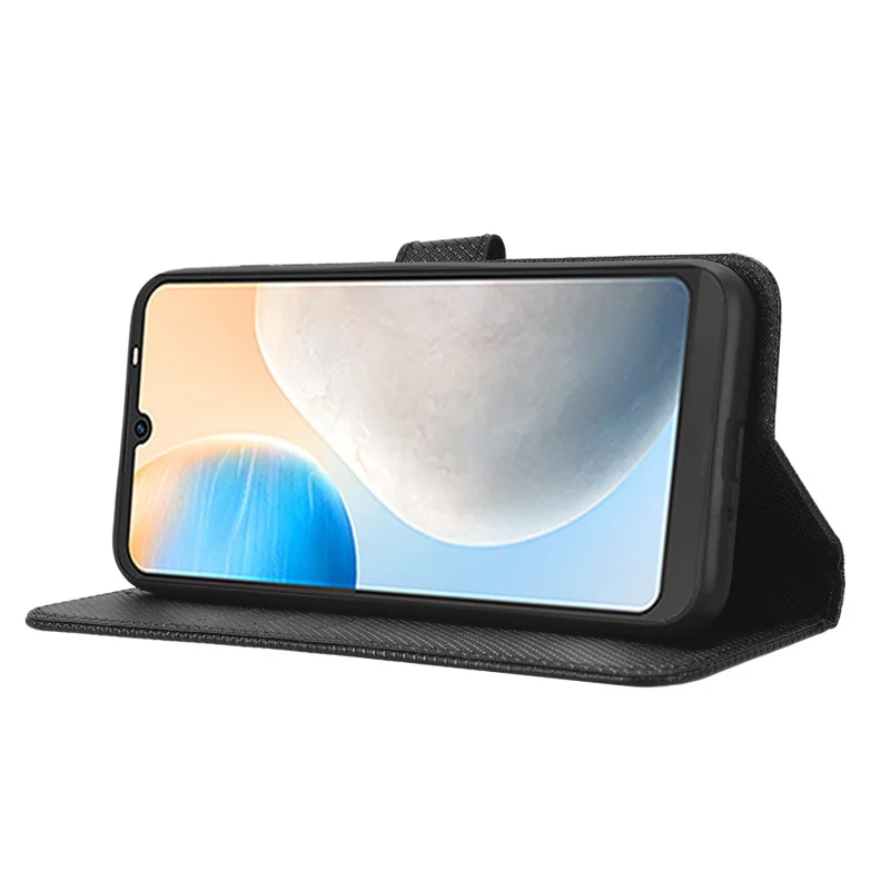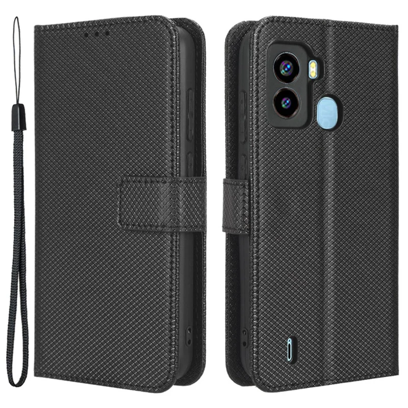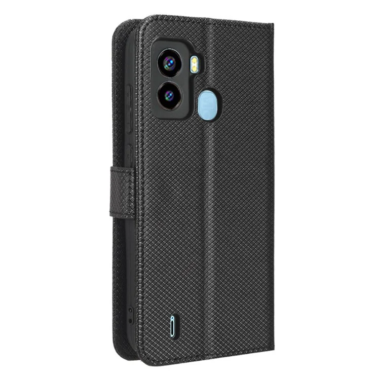 Diamond Texture Phone Shell For TECNO Pop 6 4G / BE7, Magnetic Clasp Phone Case Foldable Stand PU Leather Wallet Cover - Black