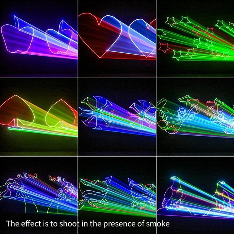 【Full-Color 3D Animation】Experience vibrant red, green, and blue laser beams creating stunning 3D animated effects for an immersive atmosphere.
