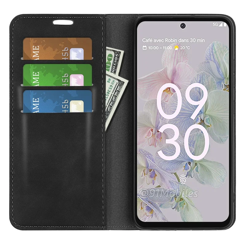 For Google Pixel 6a Wallet Design Mobile Phone Cover Shell TPU and PU Leather Phone Case with Supporting Stand - Black