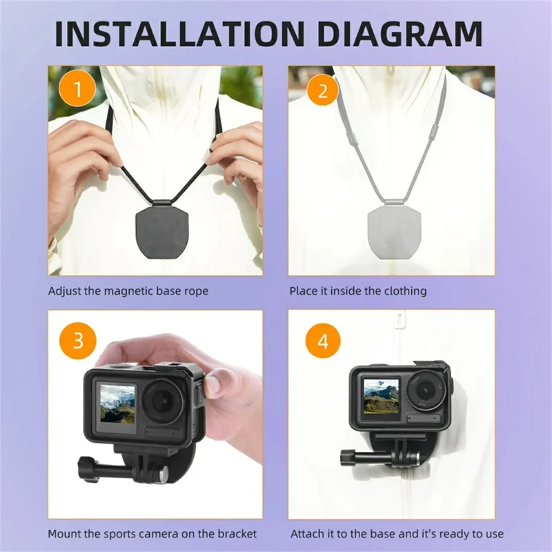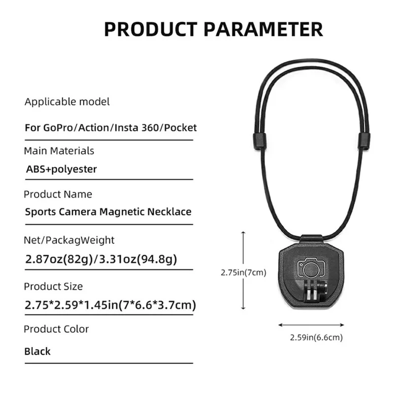 For GoPro Hero 12 / 11 / 10 / 9 / 8 / DJI Osmo Action 3 / 4 Action Camera Neck Hanging Magnetic Bracket Camera Mount Adapter