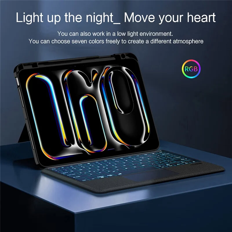 For iPad Pro 11 (2025) / 11 (2024) Leather Case + Bluetooth-compatible Keyboard with Backlight Trackpad