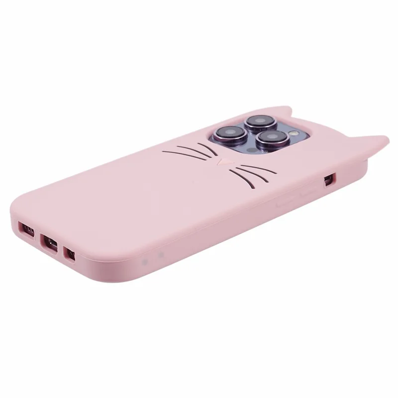 For iPhone 14 Pro Max Flexible Phone Case 3D Moustache Cat Silicone Phone Cover - Pink