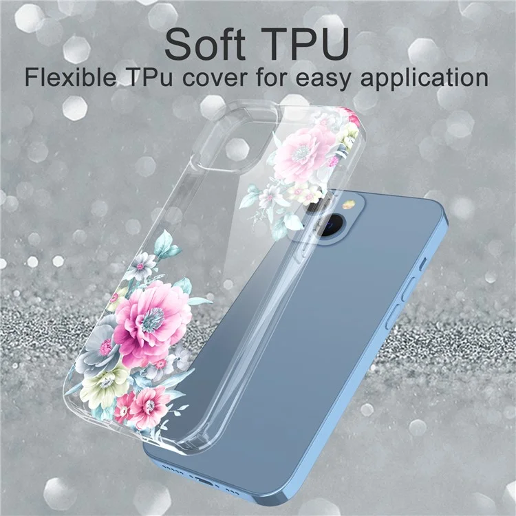 For iPhone 14 Case IMD Flower Pattern Soft TPU Clear Phone Cover - Style A