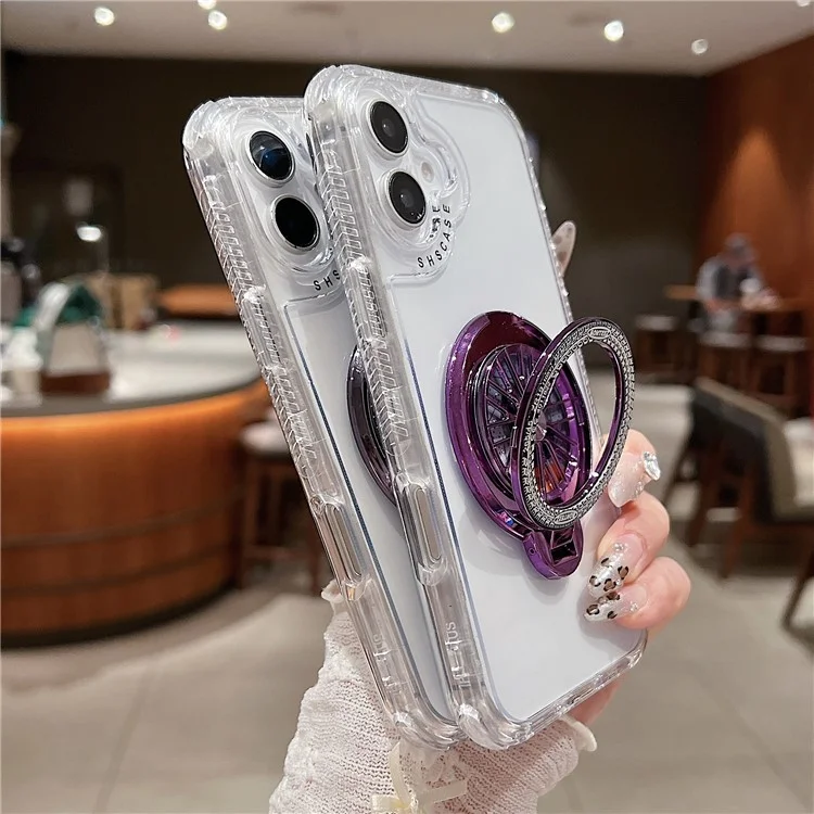 For iPhone 16 Clear Case Compatible with MagSafe Gyro Design PC + TPU Phone Cover with Kickstand - Pink
