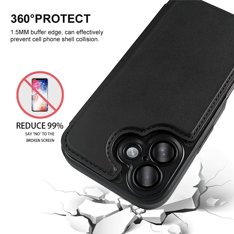 For iPhone 16 Magnetic Case RCS Eco Friendly Flip Phone Cover with Kickstand RFID Blocking - Black