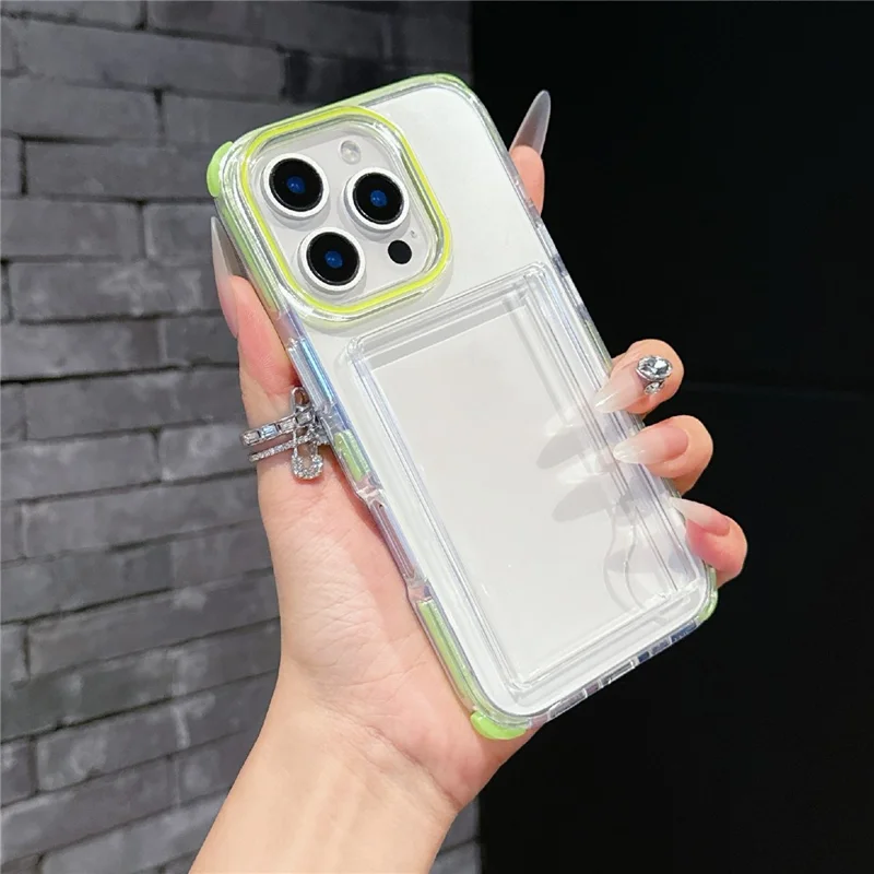 For iPhone 16 Pro Case Transparent PC + TPU Shockproof Phone Cover with Card Holder - Fluorescent Green
