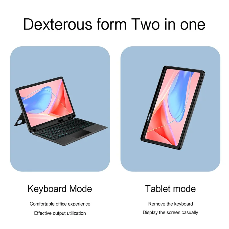 【Detachable Bluetooth-compatible Keyboard】 This protective set includes a PU leather case + a wireless Bluetooth-compatible keyboard. The keyboard is slim and portable, which is very suitable for traveling and business trips