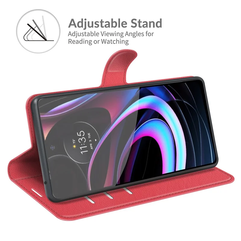For Motorola Edge (2021) Litchi Skin Phone Case Wallet Stand Design Flip Leather Wallet Phone Cover Shell - Red