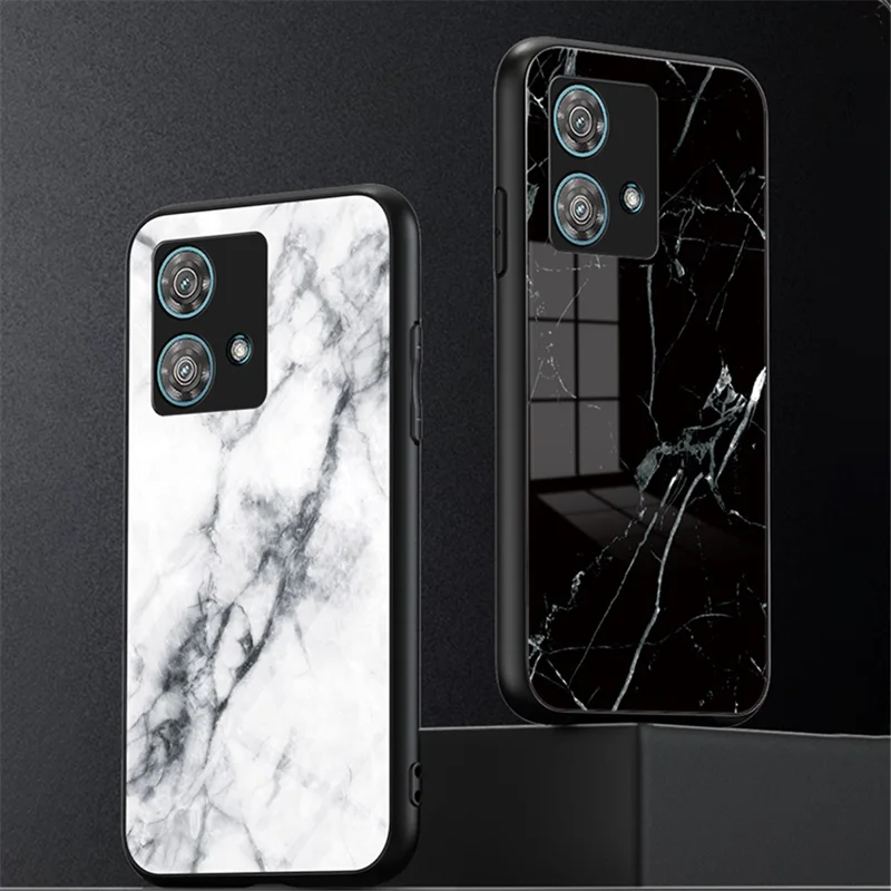 For Motorola Edge 40 Neo 5G Case Marble Pattern Printed Tempered Glass+PC+TPU Phone Protector - Black Marble