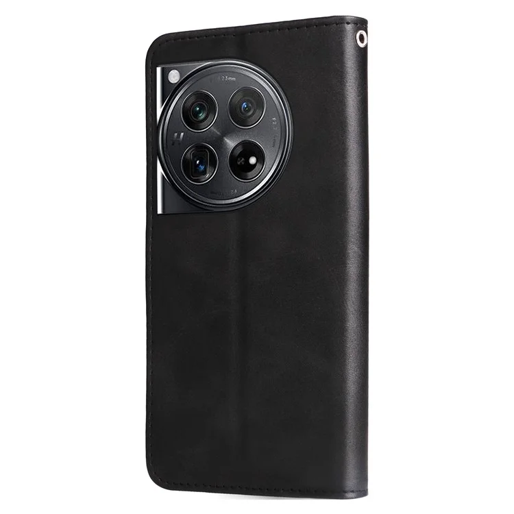 For OnePlus 12 5G Case Zipper Pocket Wallet Stand Calf Texture Phone Leather Cover - Black