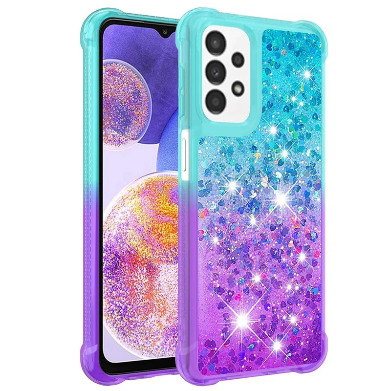For Samsung Galaxy A23 4G / 5G (Global Version) TPU Case Gradient Quicksand Phone Back Cover - Sky Blue / Purple