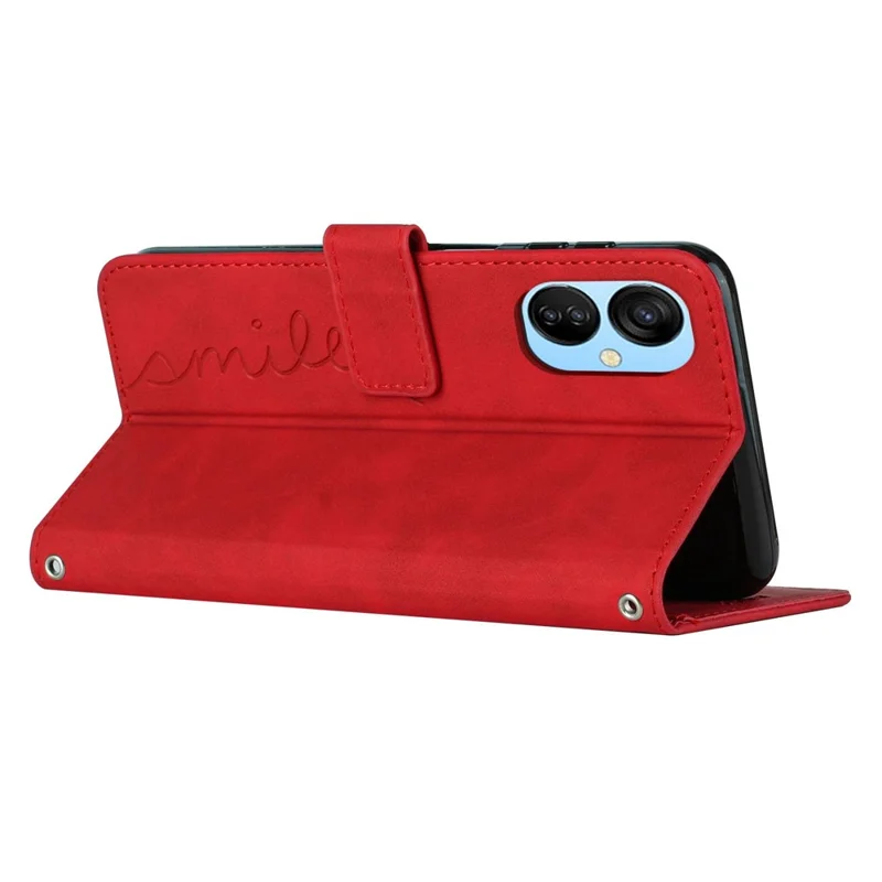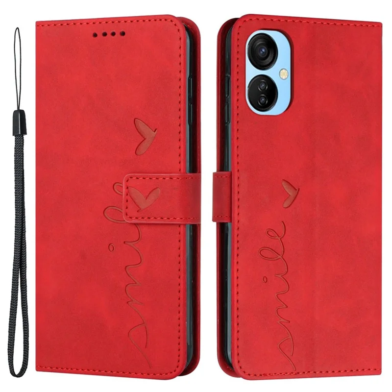 For TECNO Spark 9 Pro 4G Skin-Touch PU Leather Folio Flip Cove Imprinted Heart Shape Stand Function Wallet Phone Case with Strap - Red