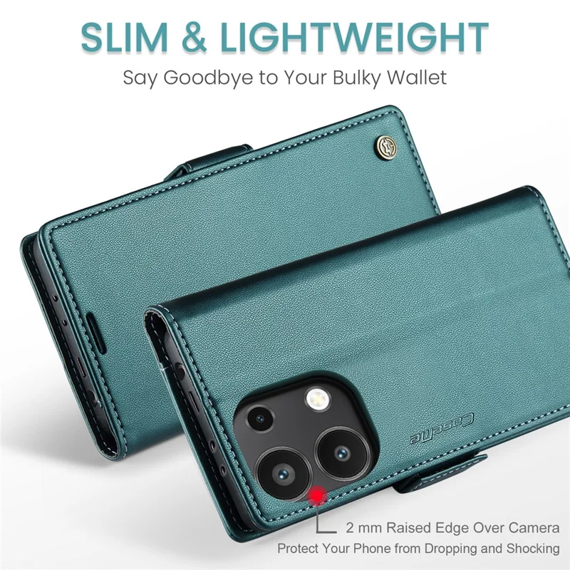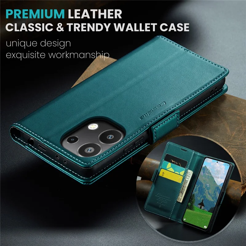 For Xiaomi Redmi Note 13 4G Case CASEME 023 Series RFID Blocking Leather Wallet Stand Phone Cover - Green