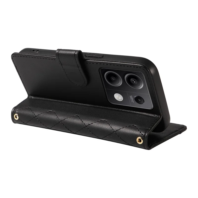 For Xiaomi Redmi Note 13 5G Case Wallet Rhombus Leather Phone Cover with Shoulder Strap, Wrist Strap - Black