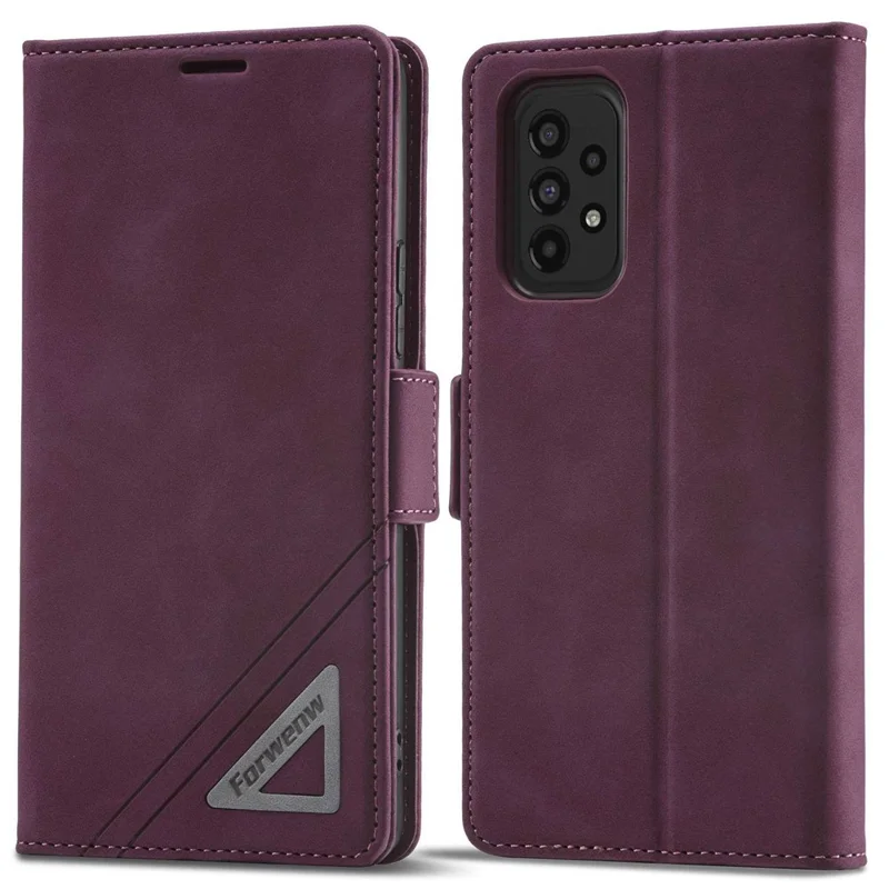 FORWENW F3-Series Phone Case For Samsung Galaxy A32 5G / M32 5G, Card Holder Shockproof Magnetic PU Leather Wallet Stand Protective Phone Cover - Wine Red