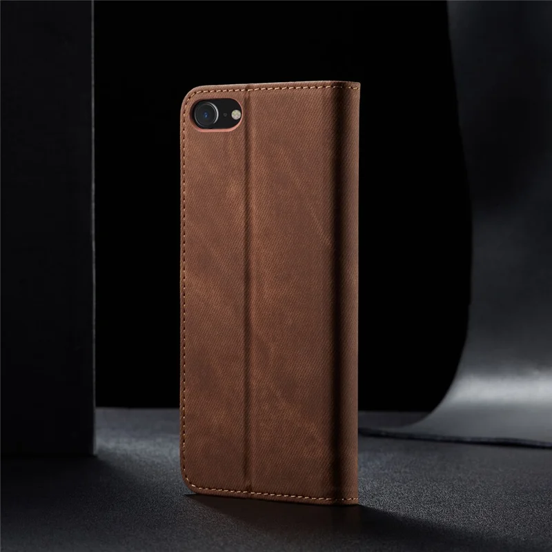 Jeans Cloth Texture Retro Style Leather Case for iPhone 6/6S - Brown