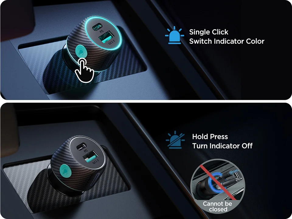 JOYROOM CCN01 60W USB-A+Type-C Fast Car Charger Colorful Button Cigarette Lighter Charger QC3.0 + PD Car Charger