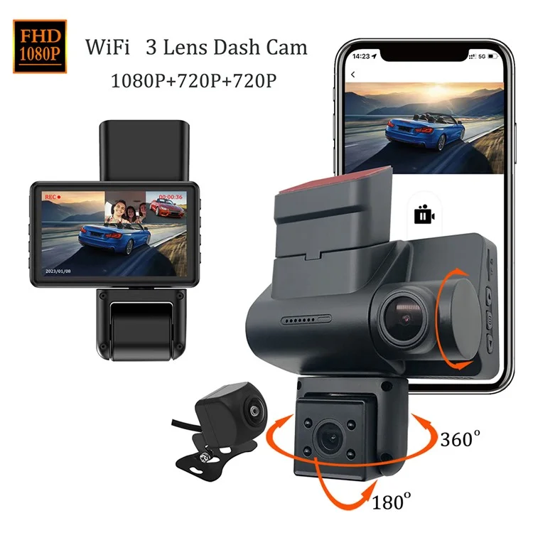 JX606 WiFi Car DVR Dash Cam 1080P HD Parking Monitoring Loop Recording 3 Cameras Driving Recorder