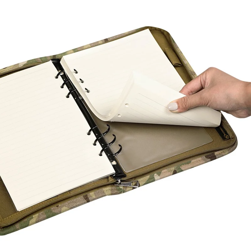 KOSIBATE H269 Ring Binder Tactical Notebook Cover with Zippered for Folders Cards, with 80 Sheets Of Loose Leaf Paper