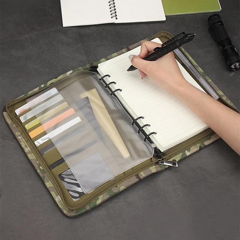 KOSIBATE H288 Ring Binder Tactical Notebook Cover with Zippered for Folders Cards, with 40 Sheets Of Loose Leaf Paper