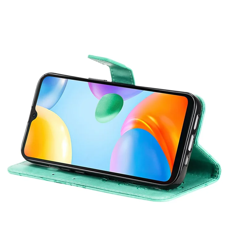 Leather Case for Xiaomi Redmi 10C 4G Butterfly Flower Imprinted Phone Cover Wallet Stand Shell with Strap - Green
