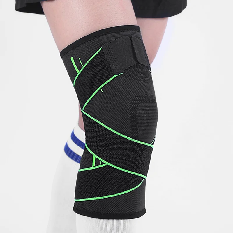 KYNCILOR AB028 1/Pc Non-slip Knee Support Brace for Running Hiking Basketball Joint Pain Relief Elastic Knee Protector Pads with Straps - Green/ S