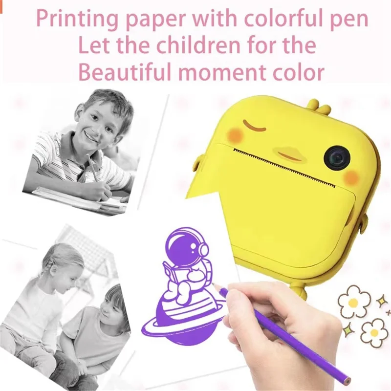 M2 Cute Instant Print Selfie Camera with 2.4'' Screen for Kids, Video Camera 48MP 1080P Rechargeable Children Toy Learning Camera - Chicken