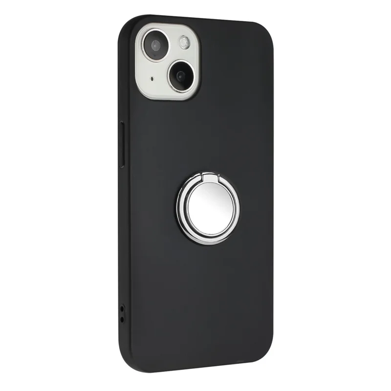 Matte TPU Case for iPhone 15 Plus , Mirror-like Ring Kickstand Phone Shell Anti-Scratch Mobile Phone Cover - Silver